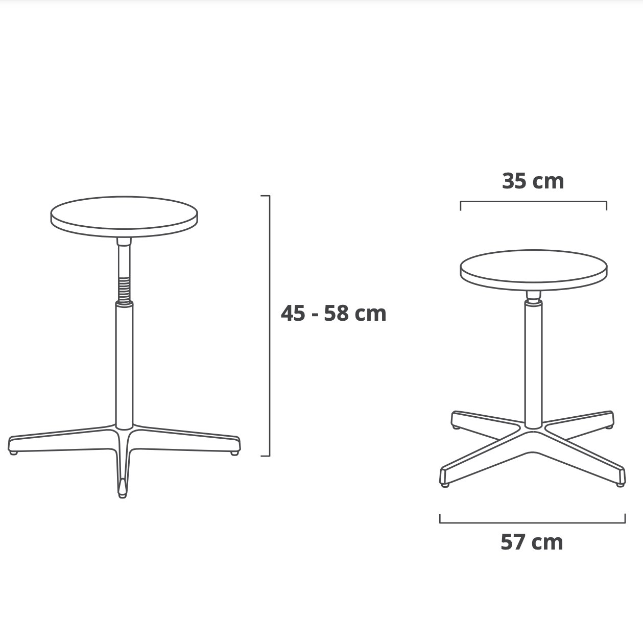 Dimensions: L 57 x D 57 x H 45-65 cm | seat diameter: 35 cm | no assembly required