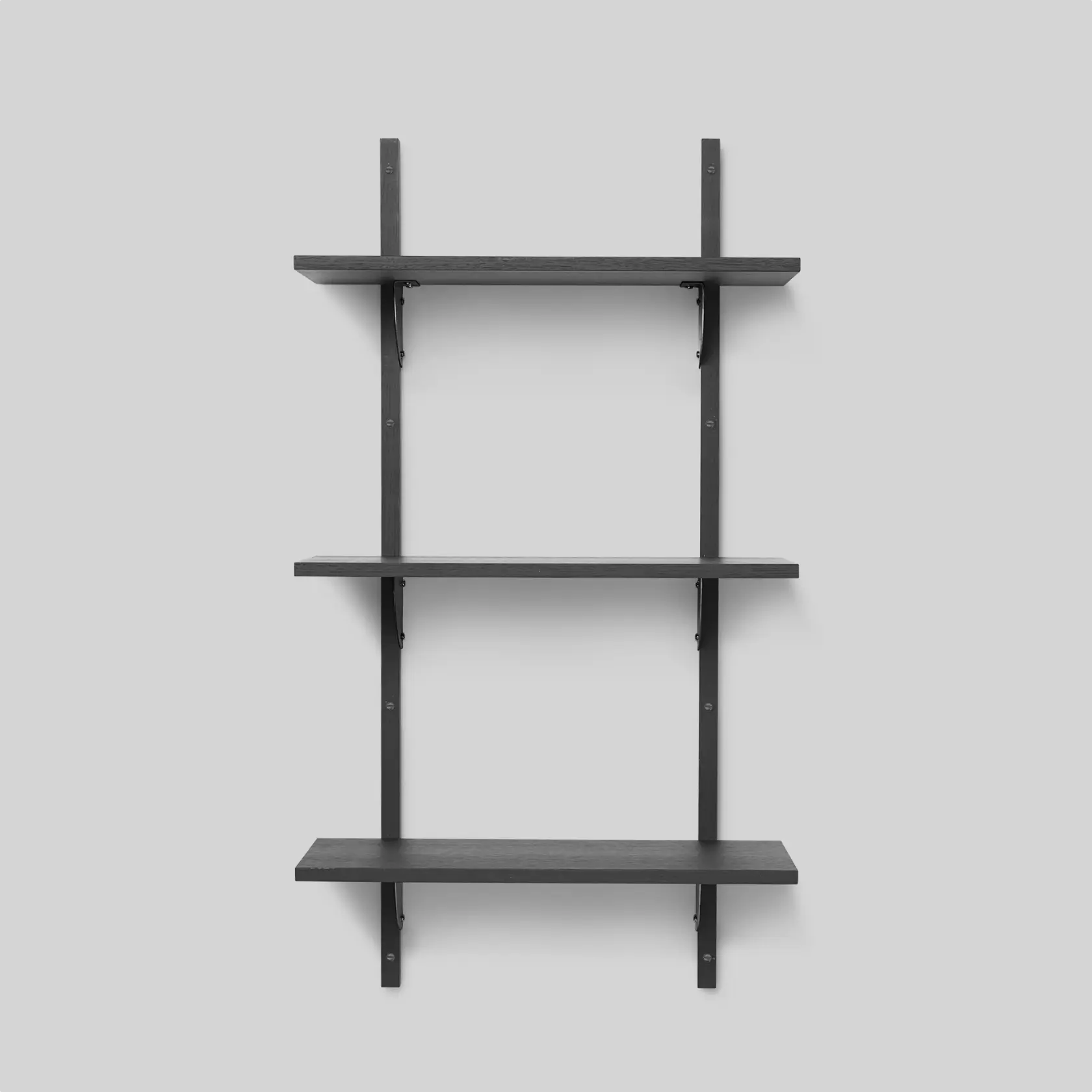 shelf: natural oak or black stained ash veneer with MDF core | profiles: black stained solid ash or solid oak wood