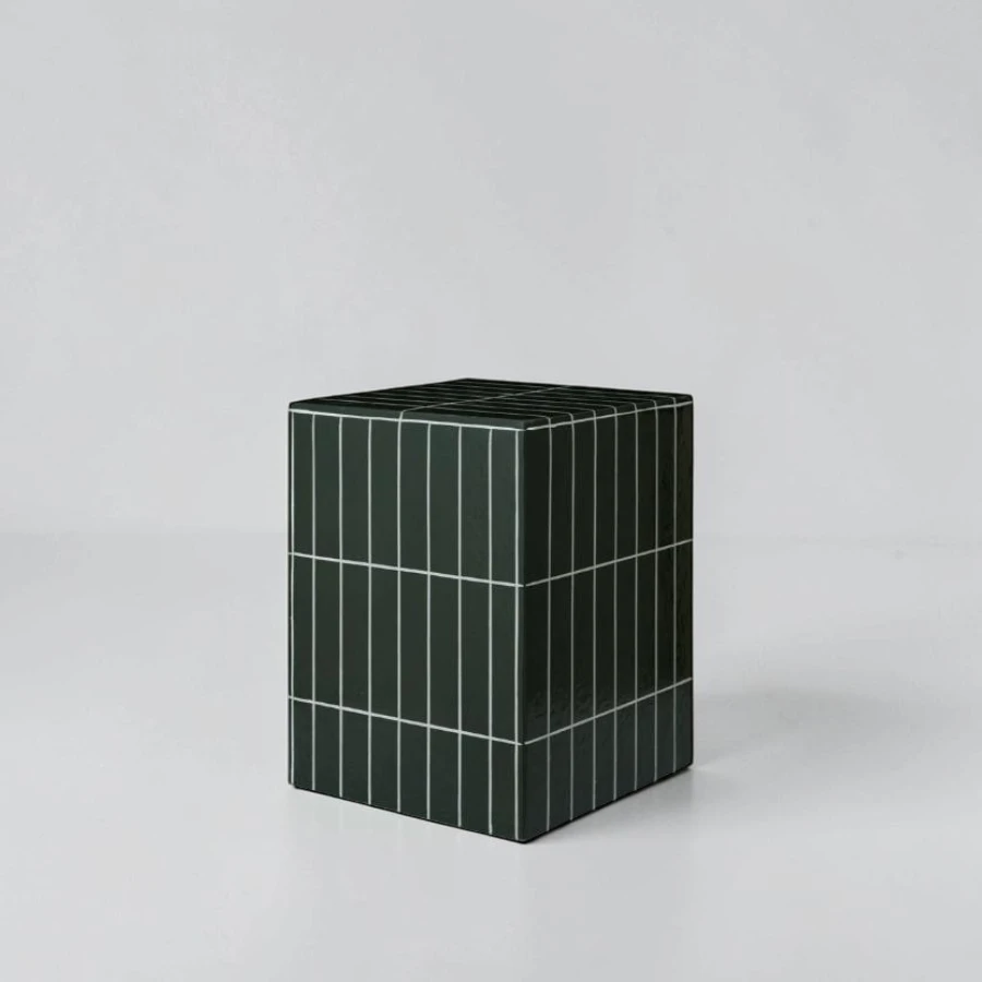 The Pillar side table is a sculptural, architectural piece defined by clean lines and refined materiality. Crafted from durable glass fibre–reinforced concrete, it features a textured, stone-like surface with engraved grooves that create a subtle, tiled effect, adding both tactile and visual depth. Its structured, rectilinear form forms a balanced, monolithic silhouette that feels both robust and elegant, offering a contemporary yet timeless presence.