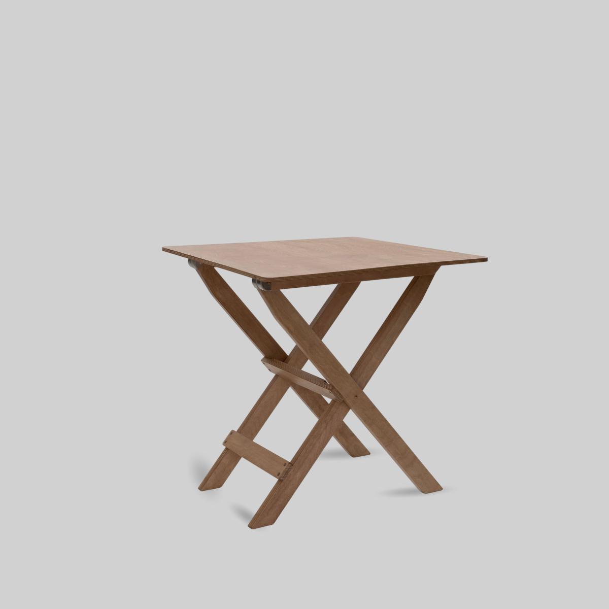 Inspired by an antique card table, this wooden folding side table is the perfect size for an indoor use, alfresco dining, or as a classy campsite arrangement. Hardwood birch, stainless steel, and copper come together to create a seamless and natural aesthetic that works well in any environment. Sturdy and built to last, this table folds down easily for storage and is small enough to fit into most vehicles or RVs. The Ridgetop Table is stained with a lovely natural honey color and finished with a satin clear coat to protect against the occasional spill or sprinkle.
