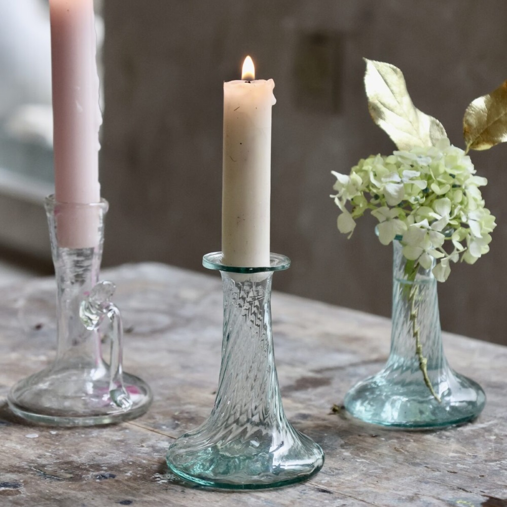 Crafted from mouth-blown recycled glass, this candleholder has a clean, classic shape that fits effortlessly into any setting.