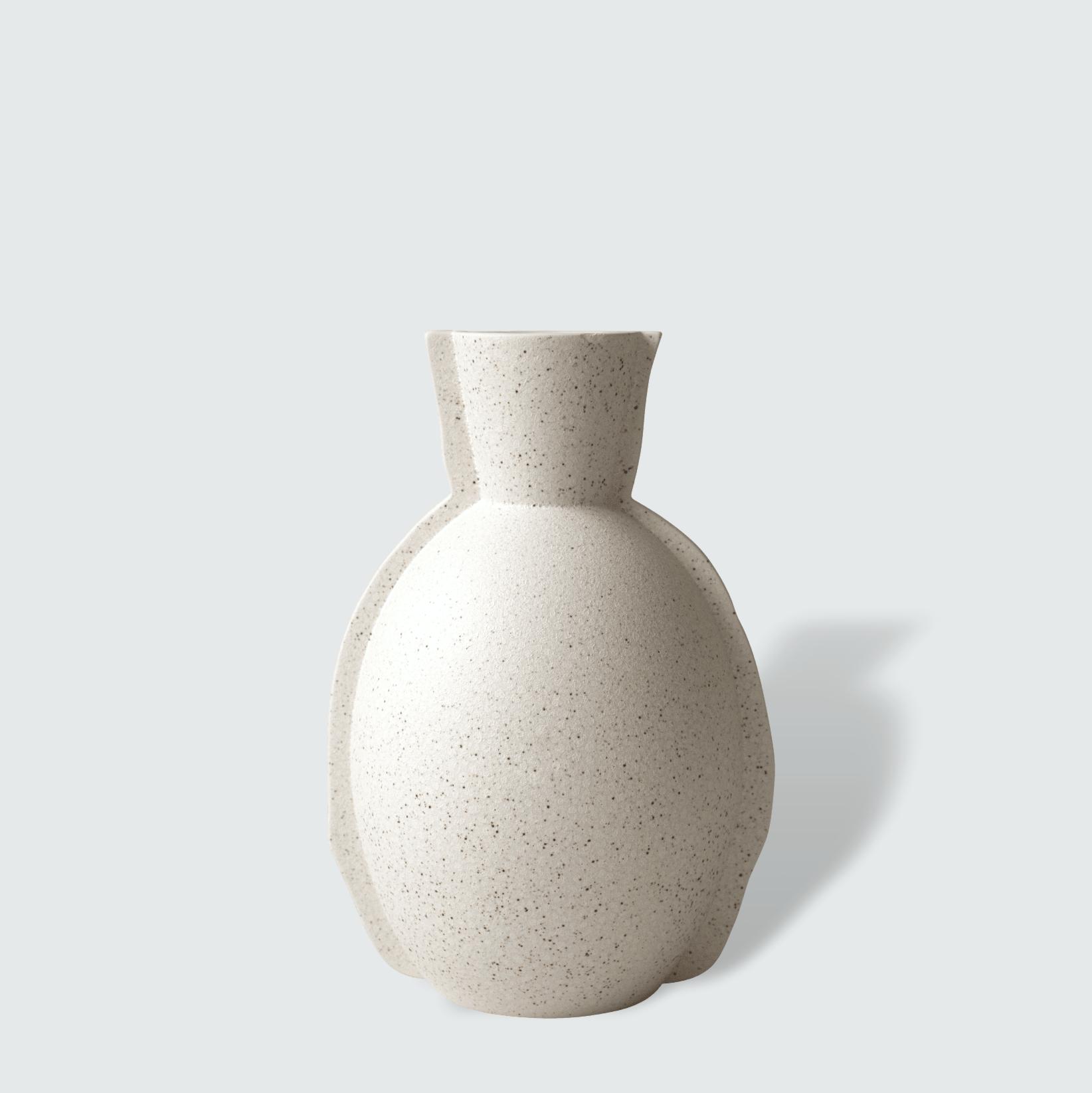 A minimalistic ceramic vase with an edge ideal for cut flowers and branches.