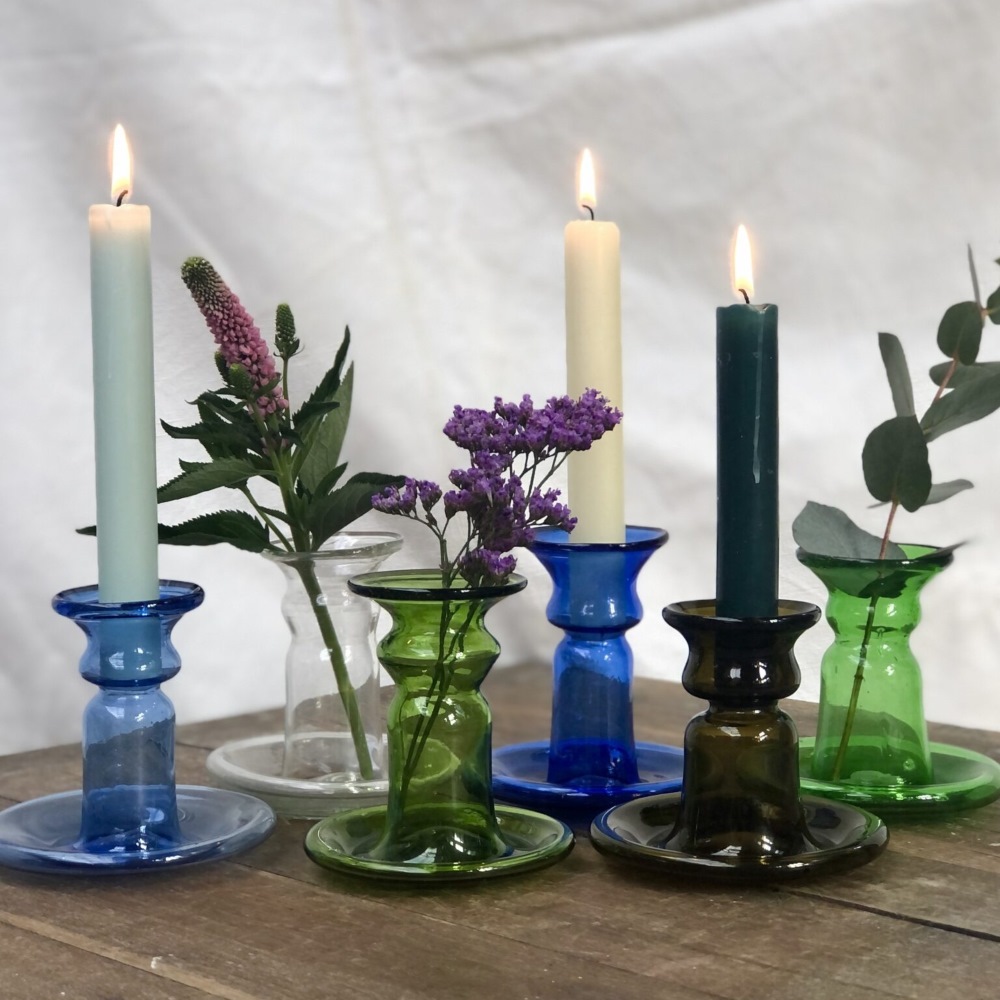 The glass used is 100% recycled therefore there may be a slight variation in color, texture, and size between each piece. On the base you can feel the pontil mark left by the glassblower’s cane, indicates that the glass was blown freehand.
