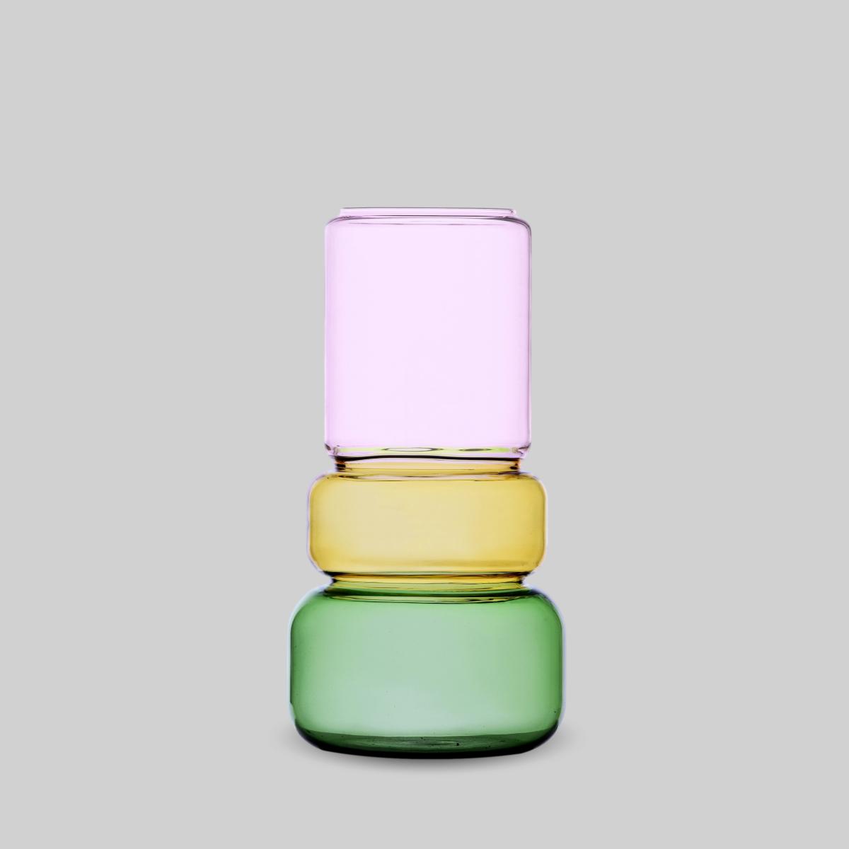 Designed with both simplicity and wonder in mind, the Revolve vase is minimal in form, yet strikingly colourful. Following a three-tone design principal, Revolve catches and refracts the light in brilliant ways, making it a great choice for windowsills and other sun-catching spots.