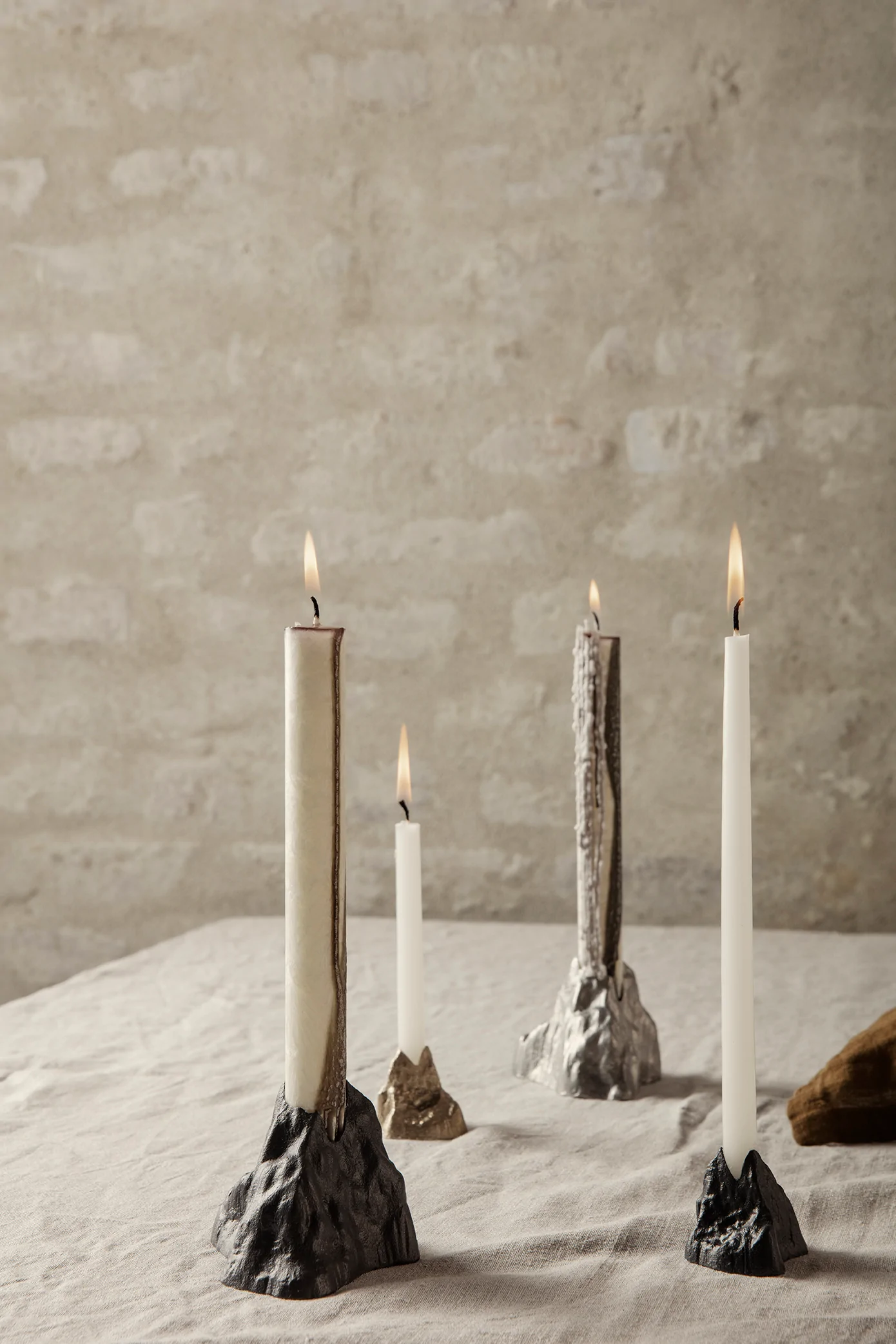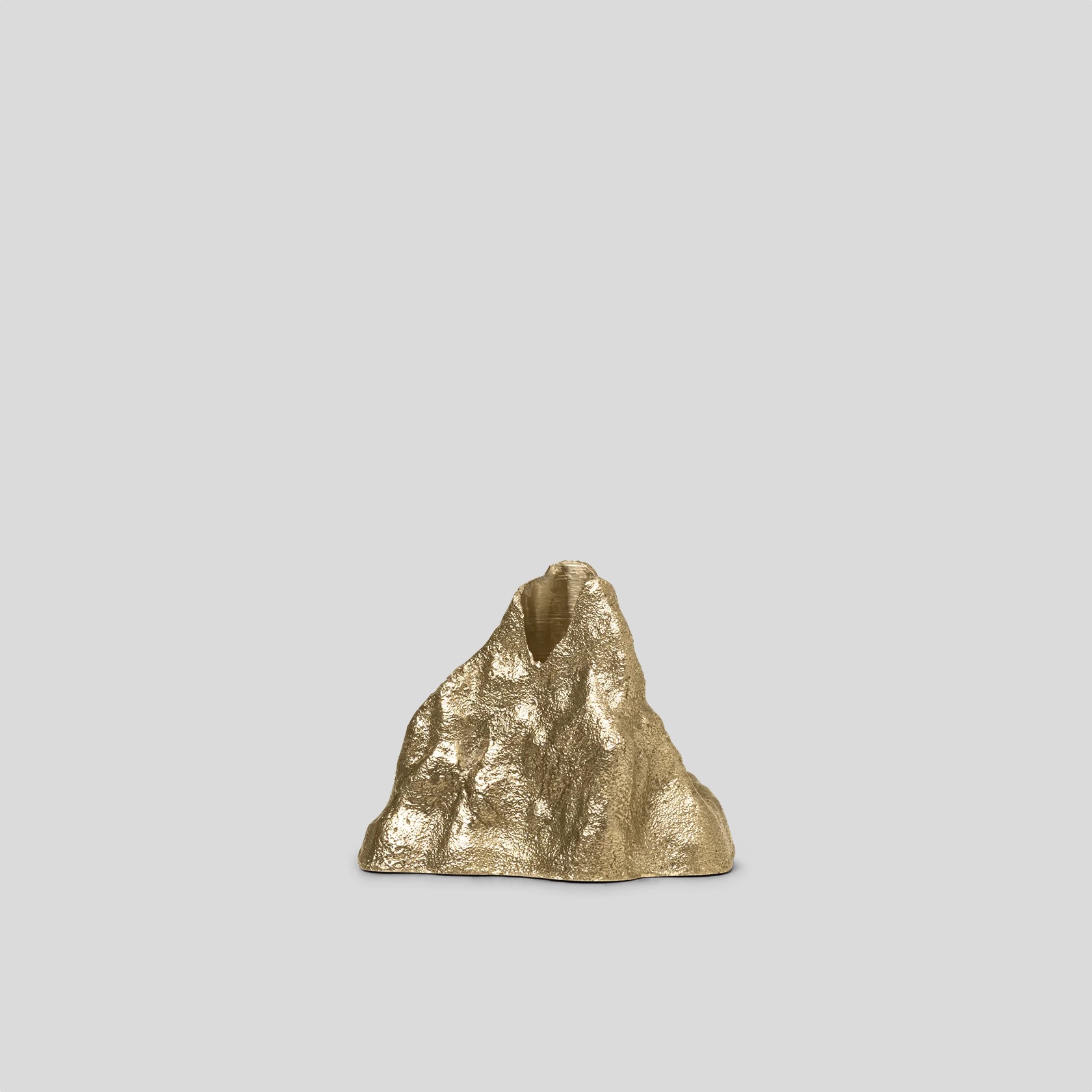 Invite organic, earth-inspired shapes into your home with Stone candleholders. Formed after the rough stone of a mountainside, the candleholder is made from casted brass and has a matte finish that compliments its jagged silhouette.