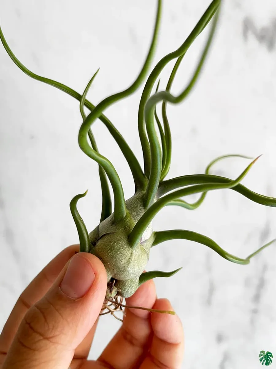 Tillandsia Bulbosa is a dinstinctive species in the Family of Tillandsia. This plant barely looks like any other of our air plant species. With beautiful narrow, mostly curly green leaves, Tillandsia Bulbosa is native to a big part of Central America, South of Mexico, South of Colombia and to the East of Brazil. This plant is not vulnerable because of its compactness and hardness. One of a kind.