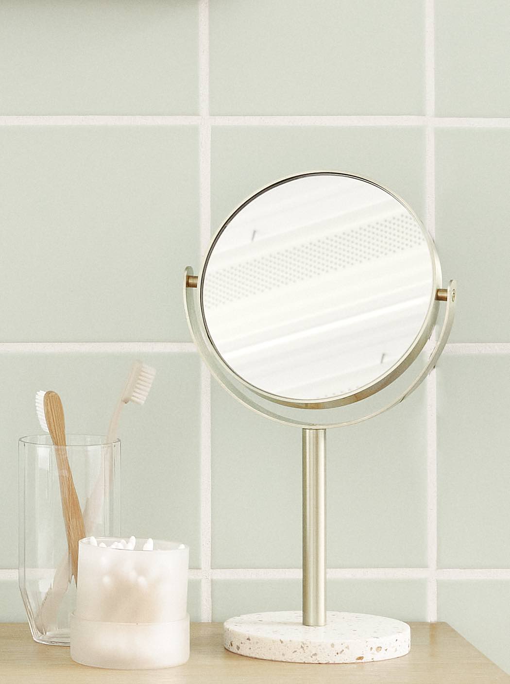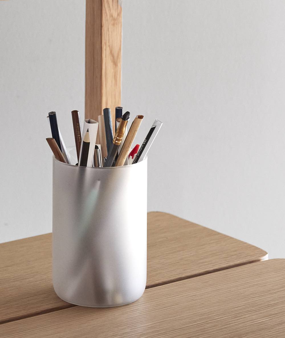 Glass storage jar with lid ideal to any office or bathroom.
