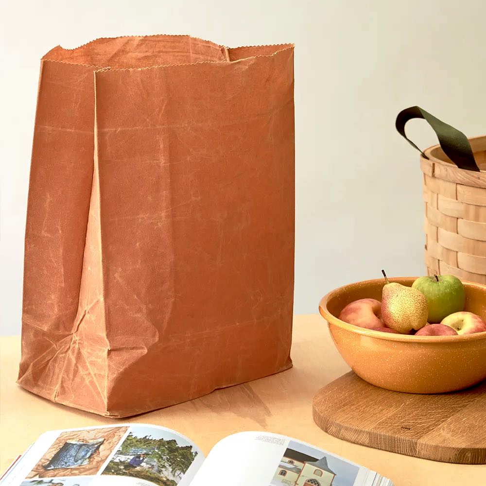 This grocery bag is slim and looks fragile but actually it is made of resistant waxed cotton following the simple design of a traditional paper bag. Its design is realistic reproducing those paper bag marks caused by folding and unfolding. In addition to it, this bag is a sustainable and versatile storage alternative. Have it with you when grocery shopping to avoid getting more and more plastic or disposable paper bags, keep it in the kitchen to storage bread or fruits, or carrying your packed lunch.