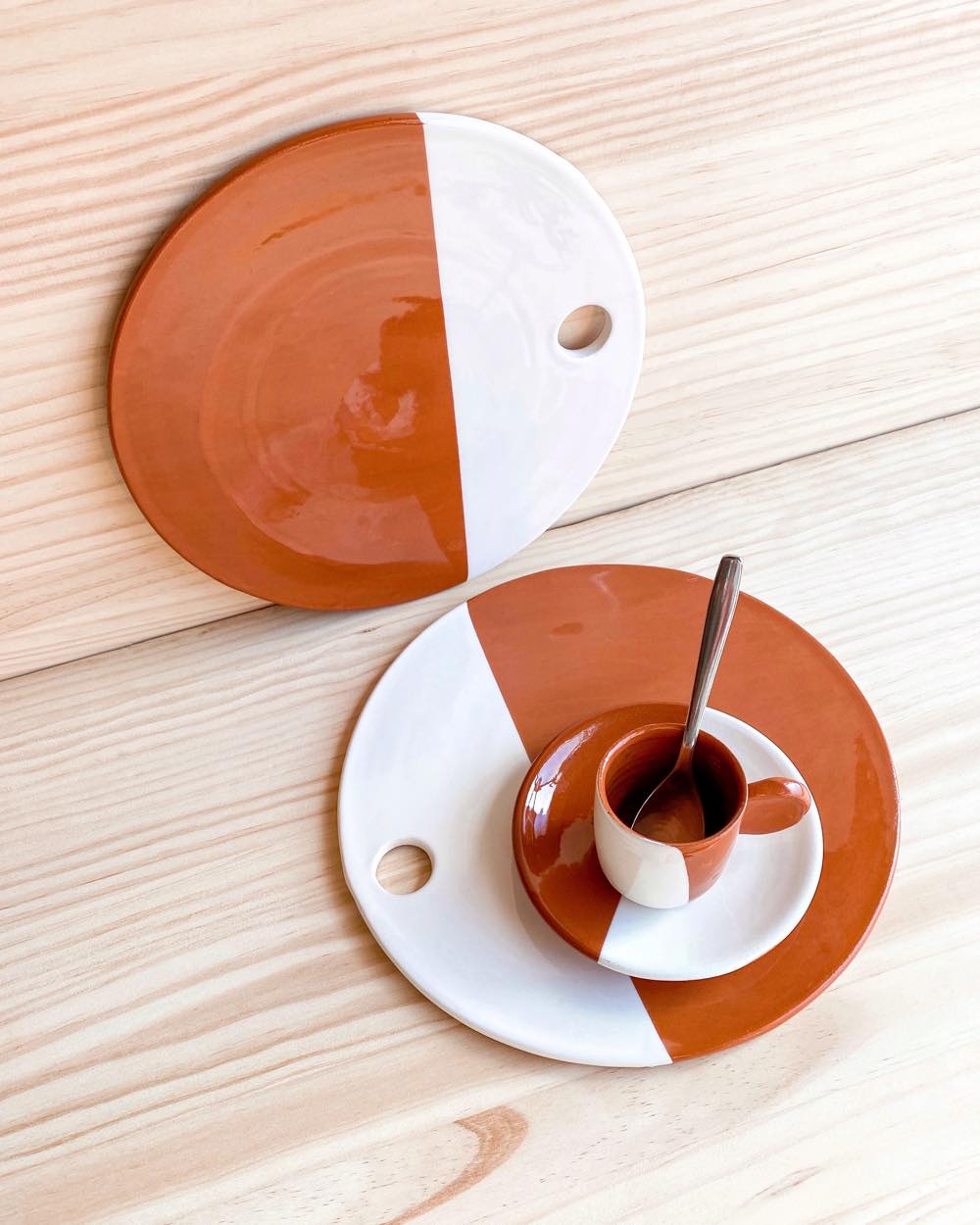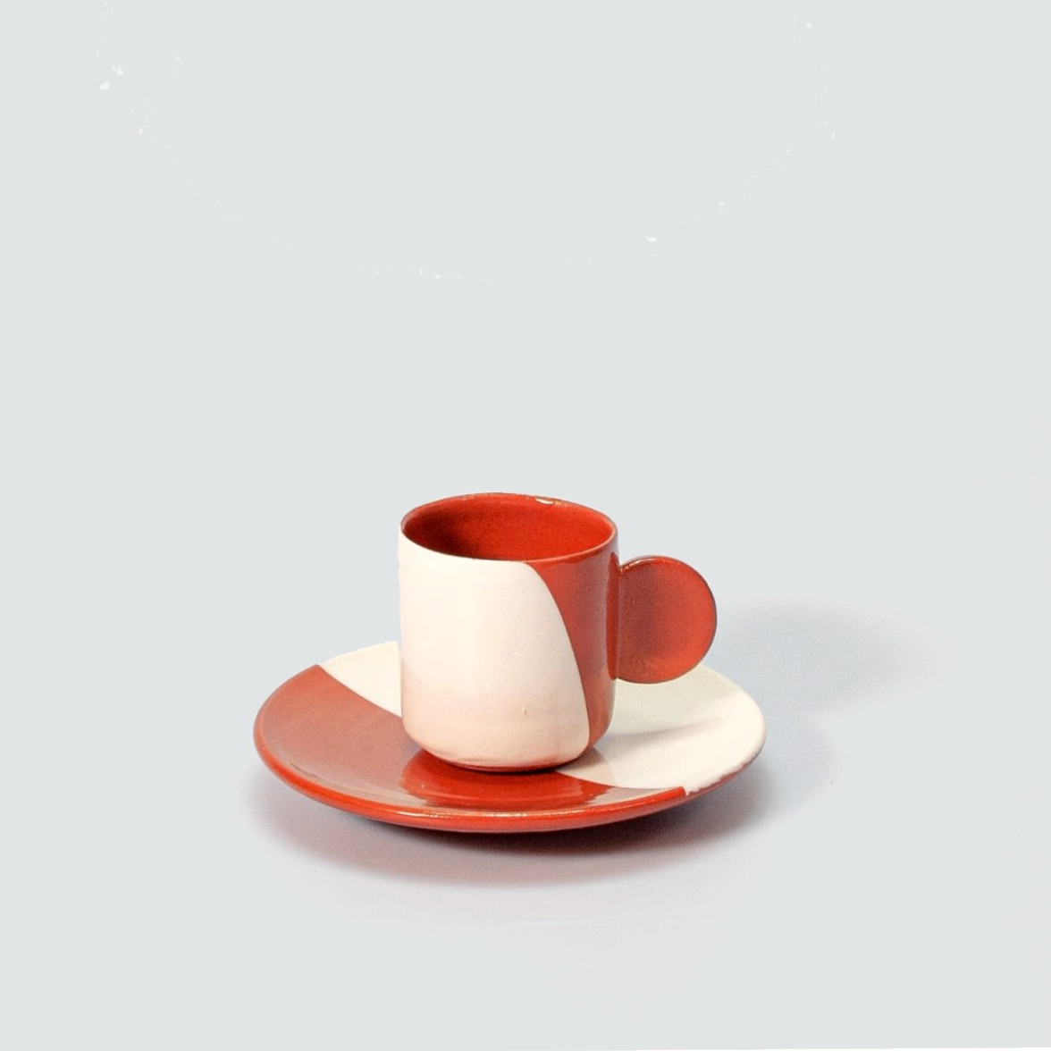 Made in a traditional way on a pottery wheel by Portuguese craftsmen, these charming espresso sets are then hand painted with glaze and dried under the Alentejo sun.