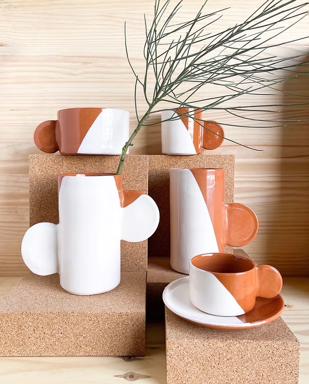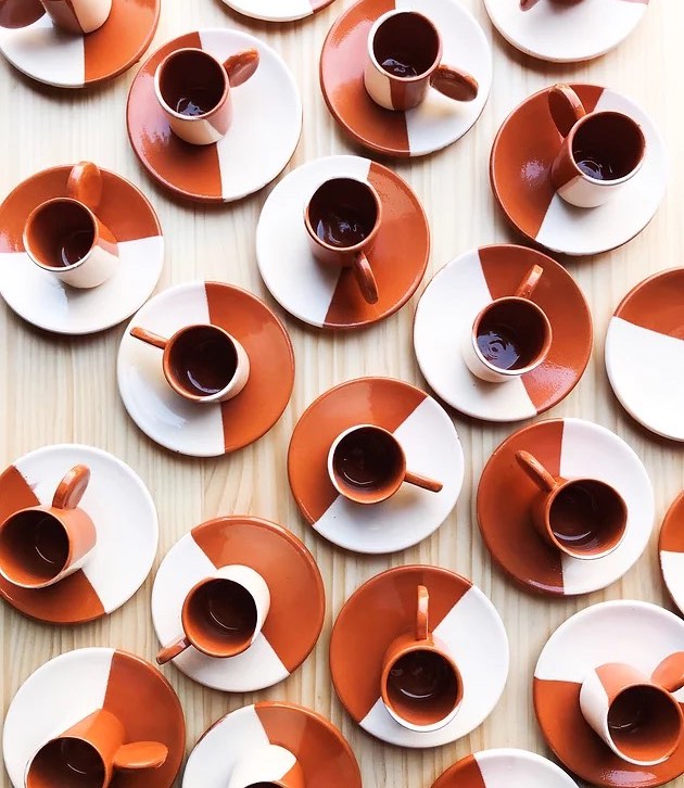 Made in a traditional way on a pottery wheel by Portuguese craftsmen, these charming tea sets are then hand painted with glaze and dried under the Alentejo sun.