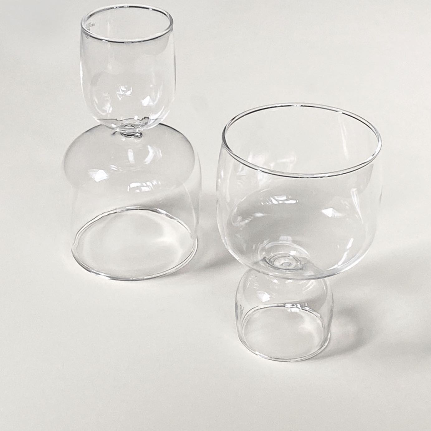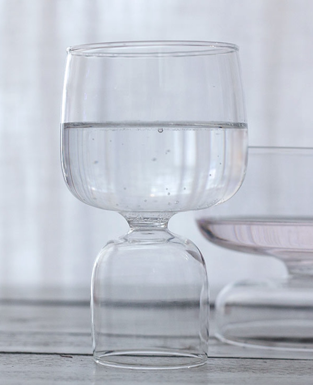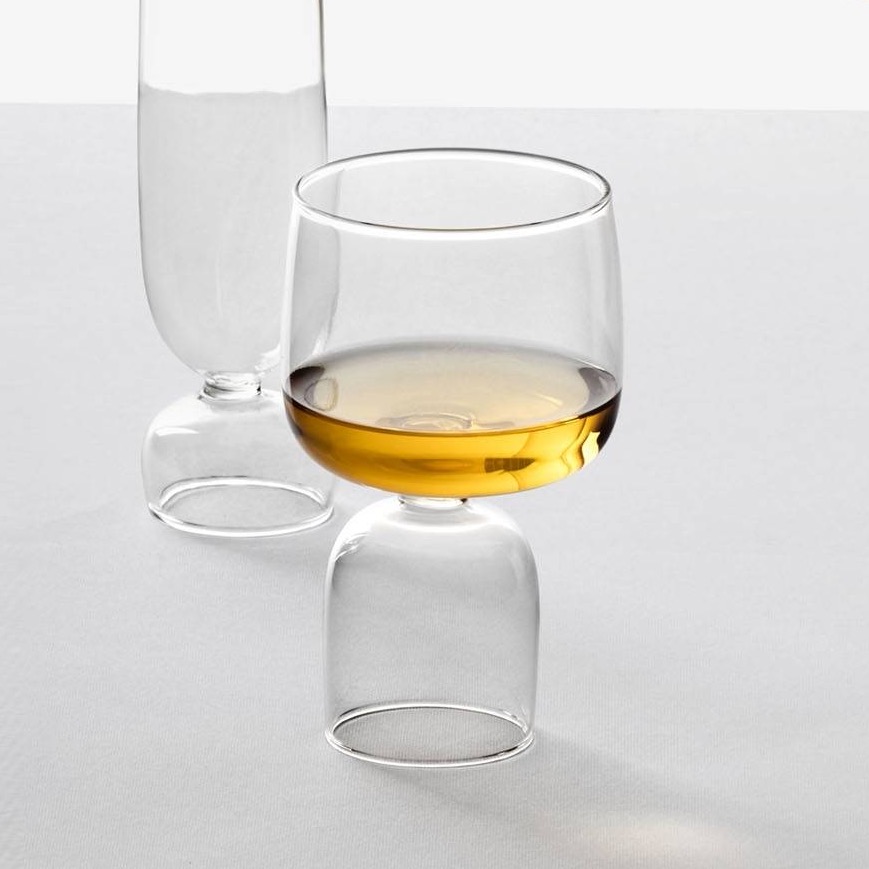 Kokeshi collection is the perfect alliance between design and functionality. It is inspired by the traditional Japanese Kokeshi dolls, which have a similar rounded shape. The modernised water glass with a sculptural statement stem is crafted from borosilicate glass using the lamp work technique.
