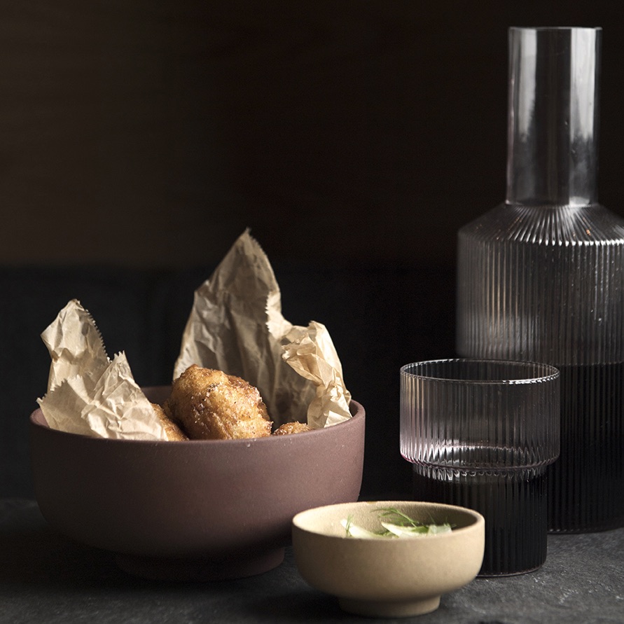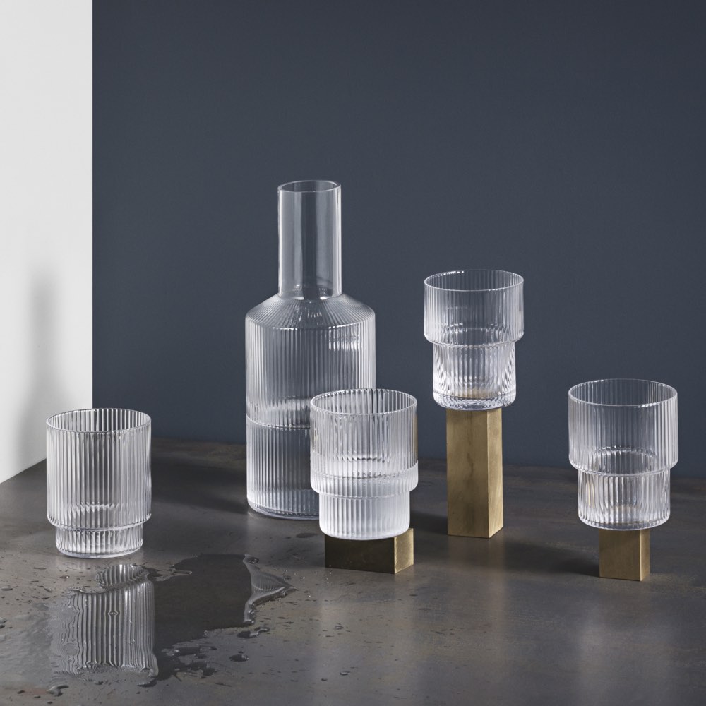 Mouth-blown into the mould, this practical and beautiful carafe features a rippled design for a contemporary look.