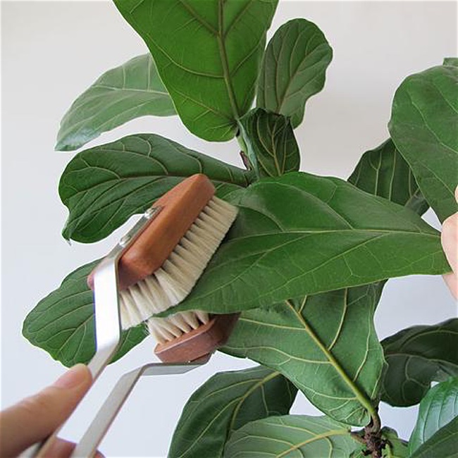 This goat hair brush is designed to gently clean large leaves to help maintain healthy plants. Simply press the stainless steel tongs together and sweep the two goat hair brushes across the leaf to eliminate dust. The soft goat hair does not damage the precious leaves whilst efficiently cleaning them.