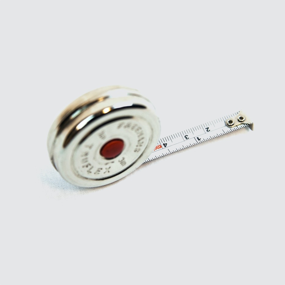 Handy tape measure made of stainless steel.