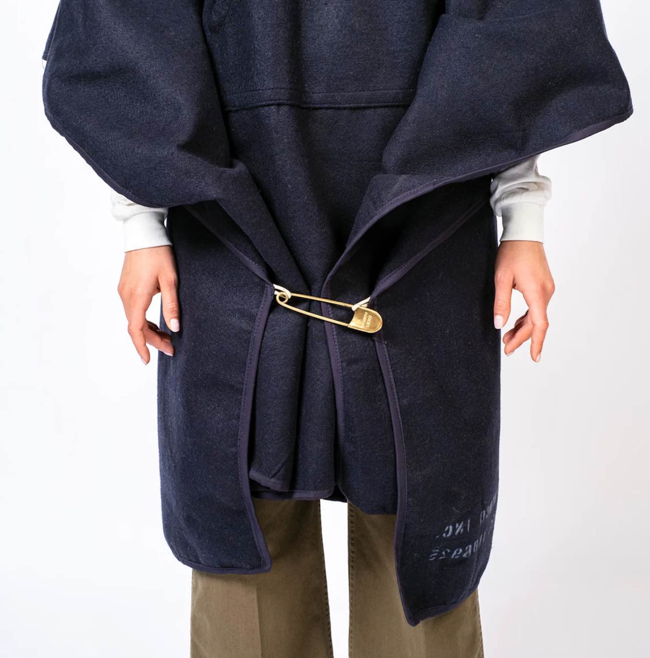 Everyone’s favorite felted blanket has been turned into the perfect cold weather companion for cozy cottage trips or brisk nights in the city. The felted poncho is made from a recycled blend of natural fibers and can be used with a safety pin to fasten it together.