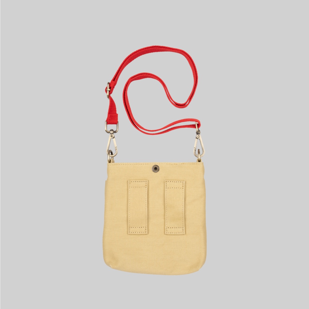 Dimensions: 19 x W 16.5 cm (without the strap) | 16oz coated canvas | red strap included