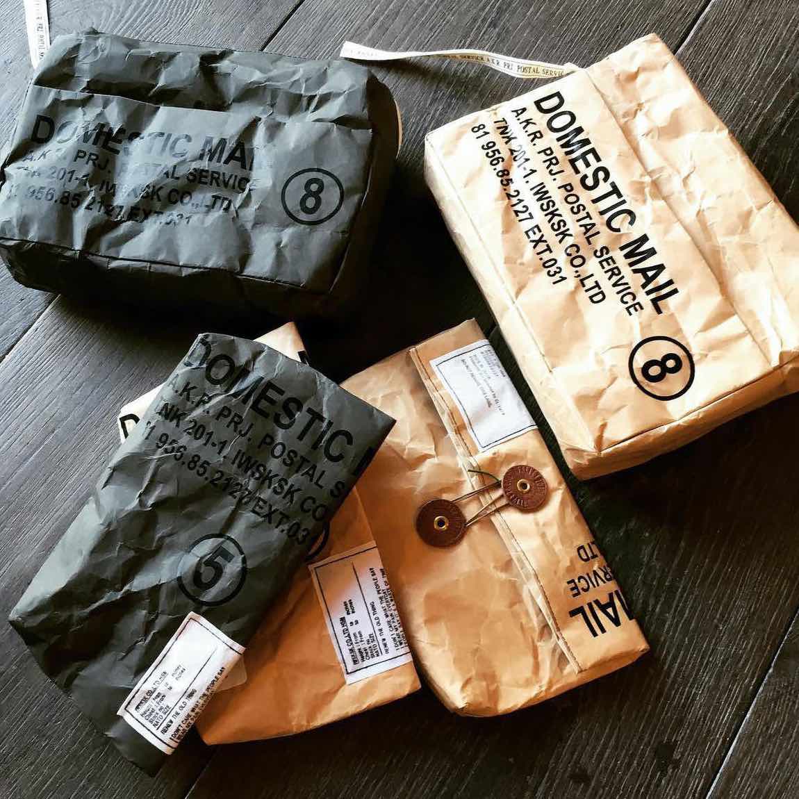 Domestic mail holds the meaning of “national postage services”. These original paper designs are created utilizing the know-how required in paper box manufacture. The unique design of this bag features paper with a velvety texture and an original design that underplays the waterproof, durable construction.