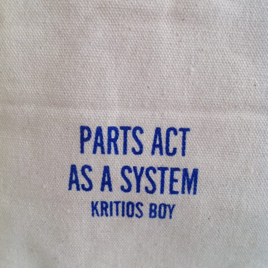 The artwork illustrates a revised version of Kritios Boy (sculpture in marble circa 480 BC, Acropolis Museum).