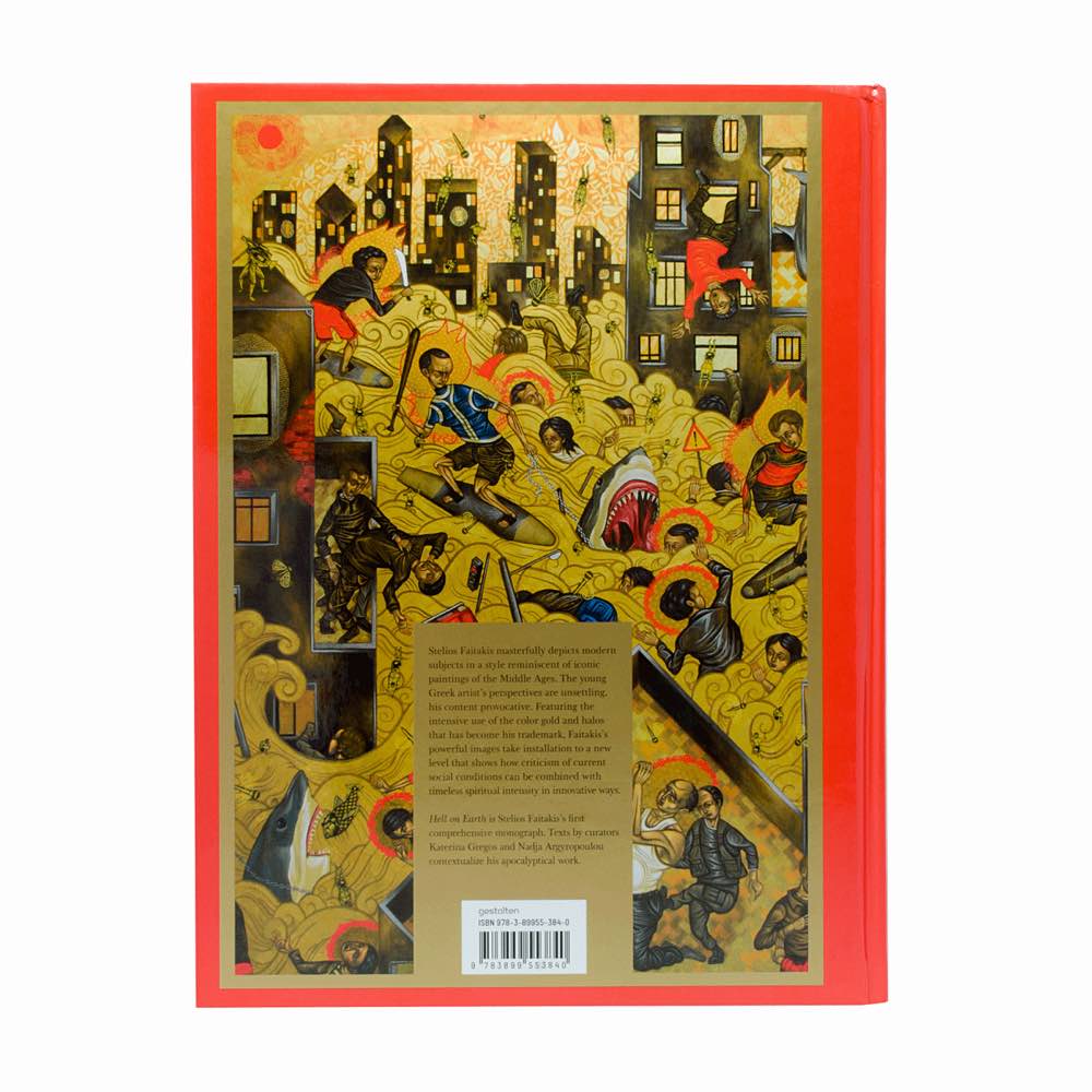Faitakis’s perspectives are unsettling, his content provocative. Referencing numerous styles, his images juxtapose Medusa-headed giraffes with skateboarders riding waves of destruction or religious martyrs and bizarre gangsters with suffering lovers. Violence, death, and destruction lay siege to his apocalyptical landscapes.