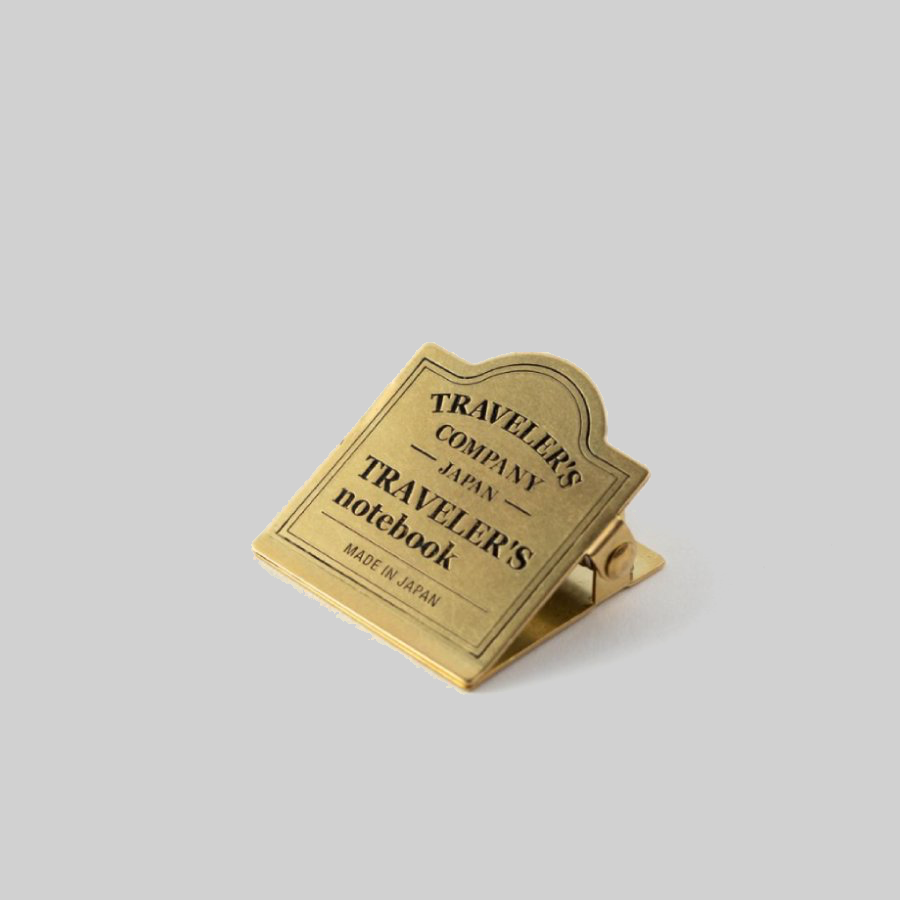 This brass clip will keep your Traveler’s notebook open and flat. Made in a factory in the old downtown area of Tokyo, this clip’s materials, size, design and spring strength are especially created for use with Traveler’s notebook. When taking it on the go, attach it to the leather cover or a refill so it’s ready to use when you want to write or take a picture. There’s also a hole in the back that you can use to hang it on a wall and use your notebook for decoration.