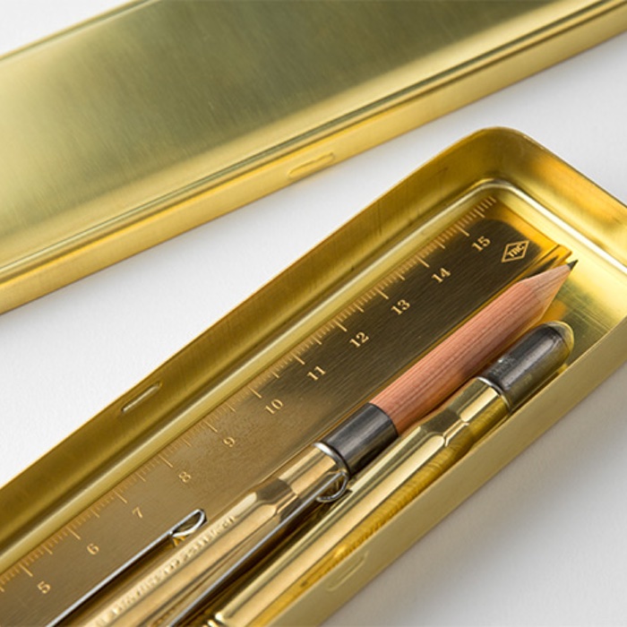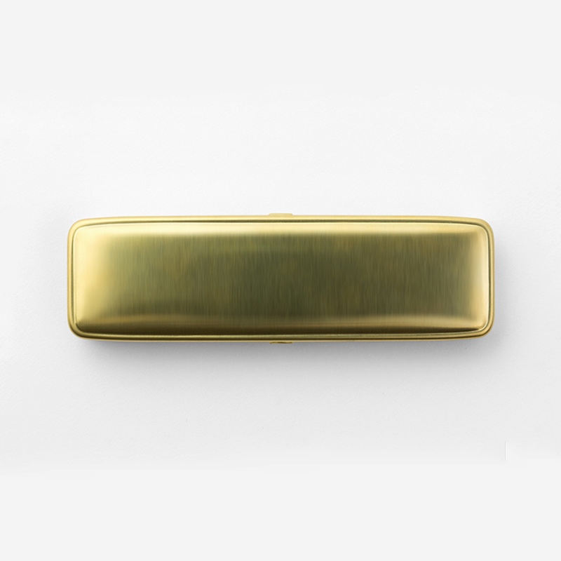 This single tray pen case is made from high quality textured solid brass, providing a sturdy place to hold your writing tools. The brass itself will develop a vintage look and finish over time, leaving you with a unique case, reminiscent of an antique.