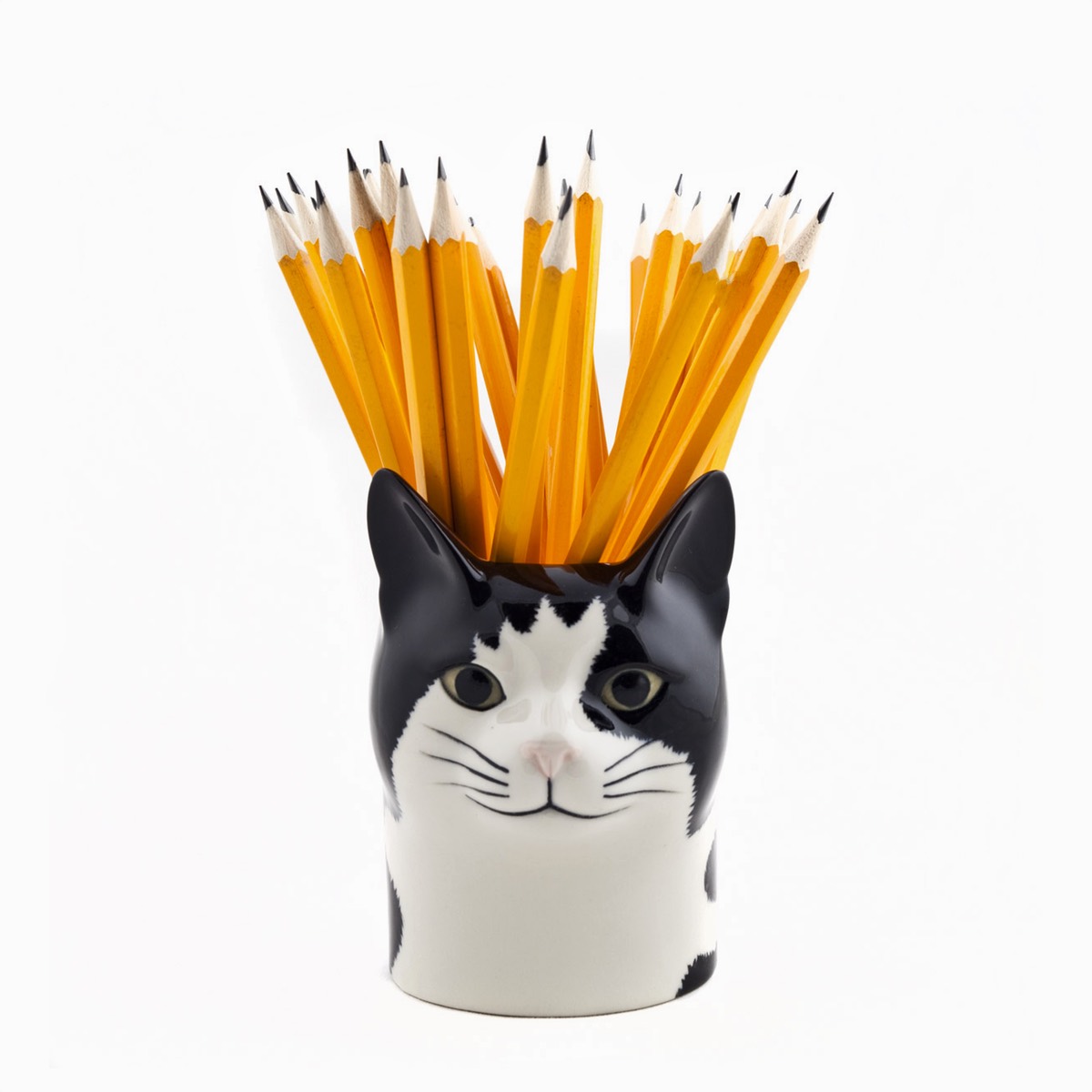 Ready to hold onto your pens, pencils, office supplies and more, the helpful Cat pencil pot is ideal for your desk, a shelf or table.