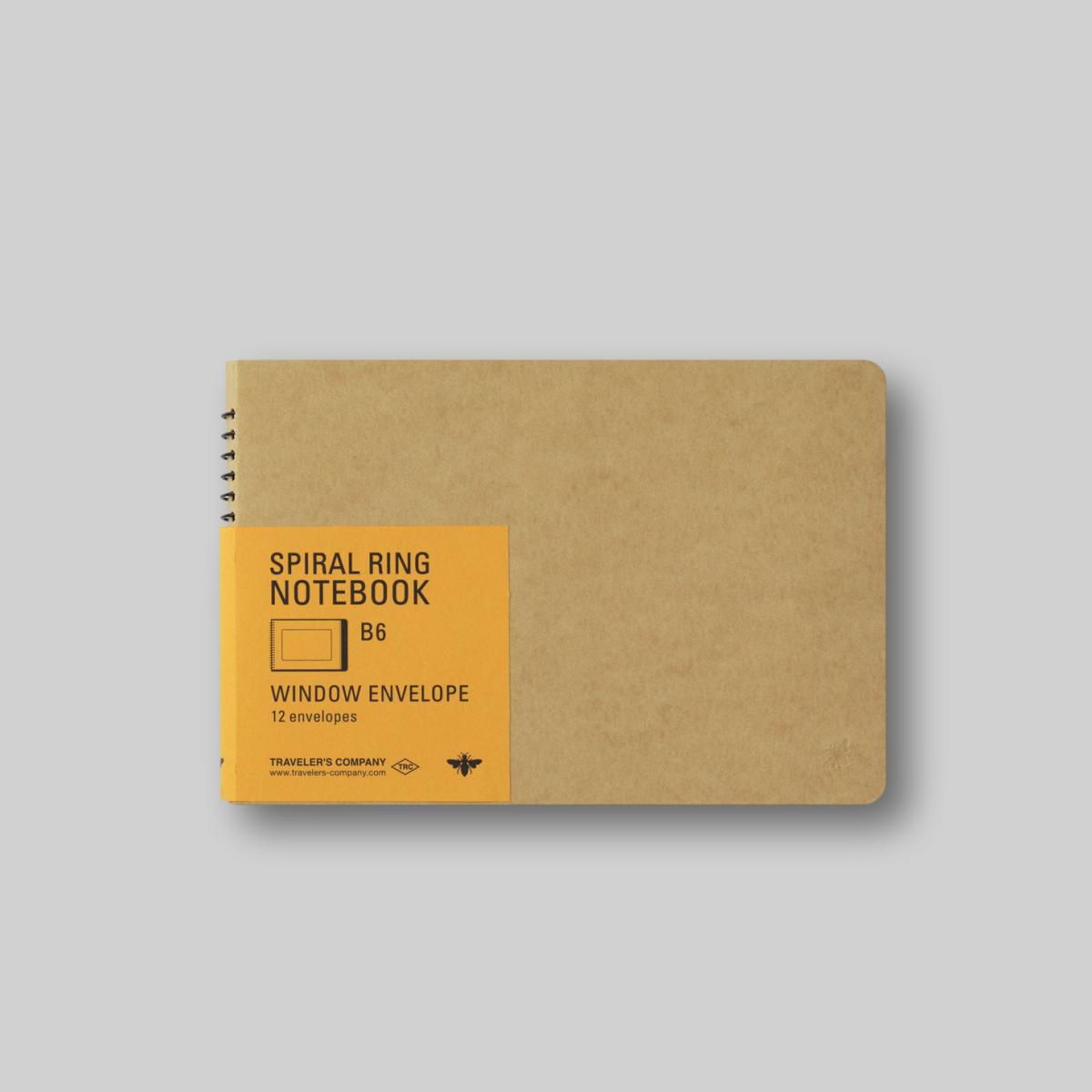 The Window Envelope Spiral Ring Notebook features 12 sheets of thick kraft paper with a paper window envelope on each side. If you store postcards, photos, tickets, etc., the contents can be seen from the window, so you can look back like an album.