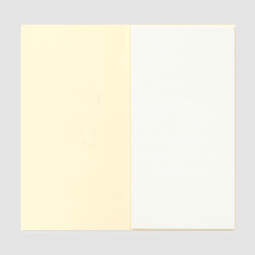 This refill is arranged in an accordion-style fold. The paper itself is thick, just like the type of paper used for watercolor painting. This characteristic allows for all different options of creativity in your notebook. Draw, make a collage, arrange photos, tickets or labels or use the folded-out paper to write your travel itinerary, or ideas and plans for the year.