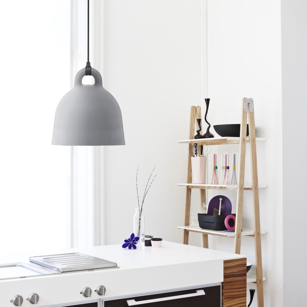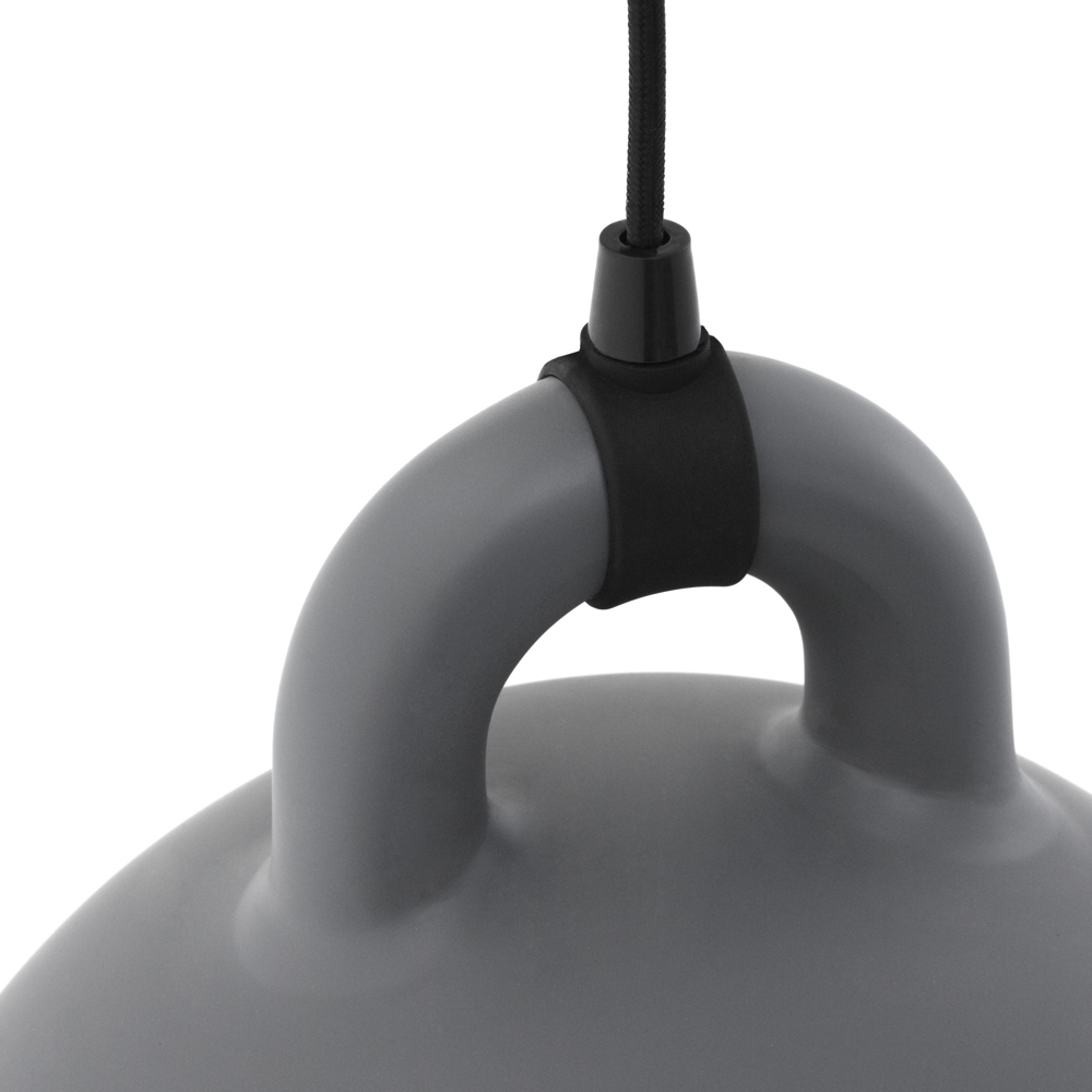 Bell is a pendant lamp in an iconic bell shape and with special attention paid to its details. Its round, even surface gives the lamp the impression of having been cast. Rather than being hidden, the gathering between the cord and the lamp is accentuated in a contemporary and original way.