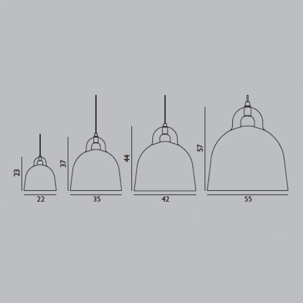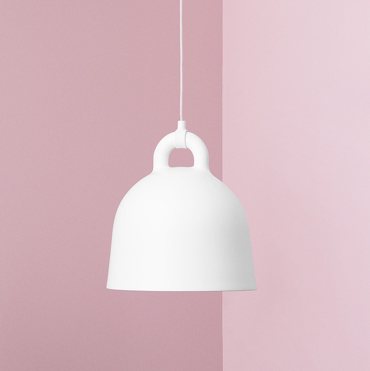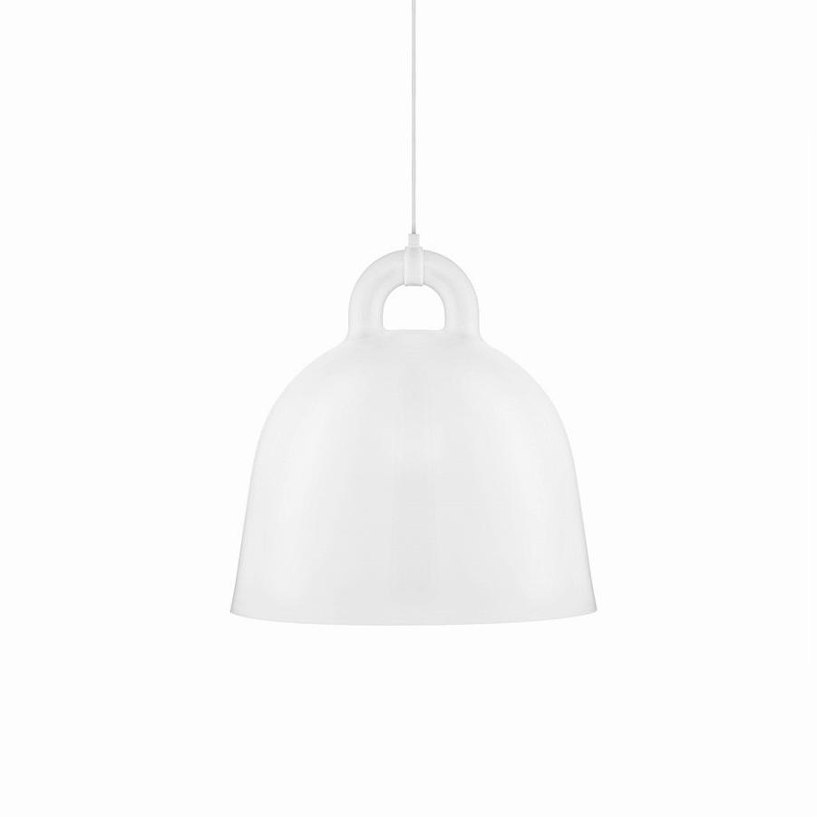 Bell is a pendant lamp in an iconic bell shape and with special attention paid to its details. Its round, even surface gives the lamp the impression of having been cast. Rather than being hidden, the gathering between the cord and the lamp is accentuated in a contemporary and original way.