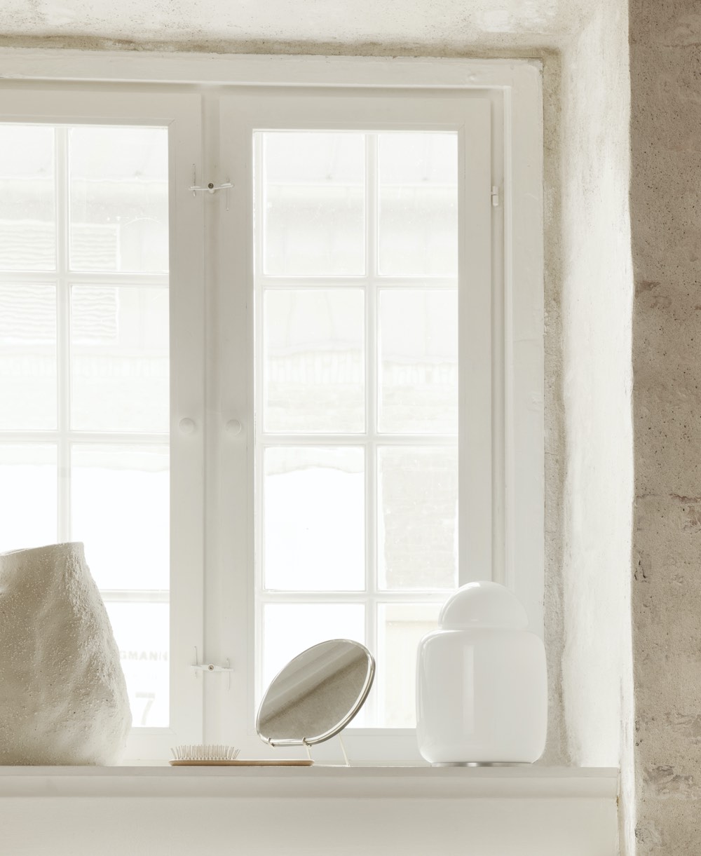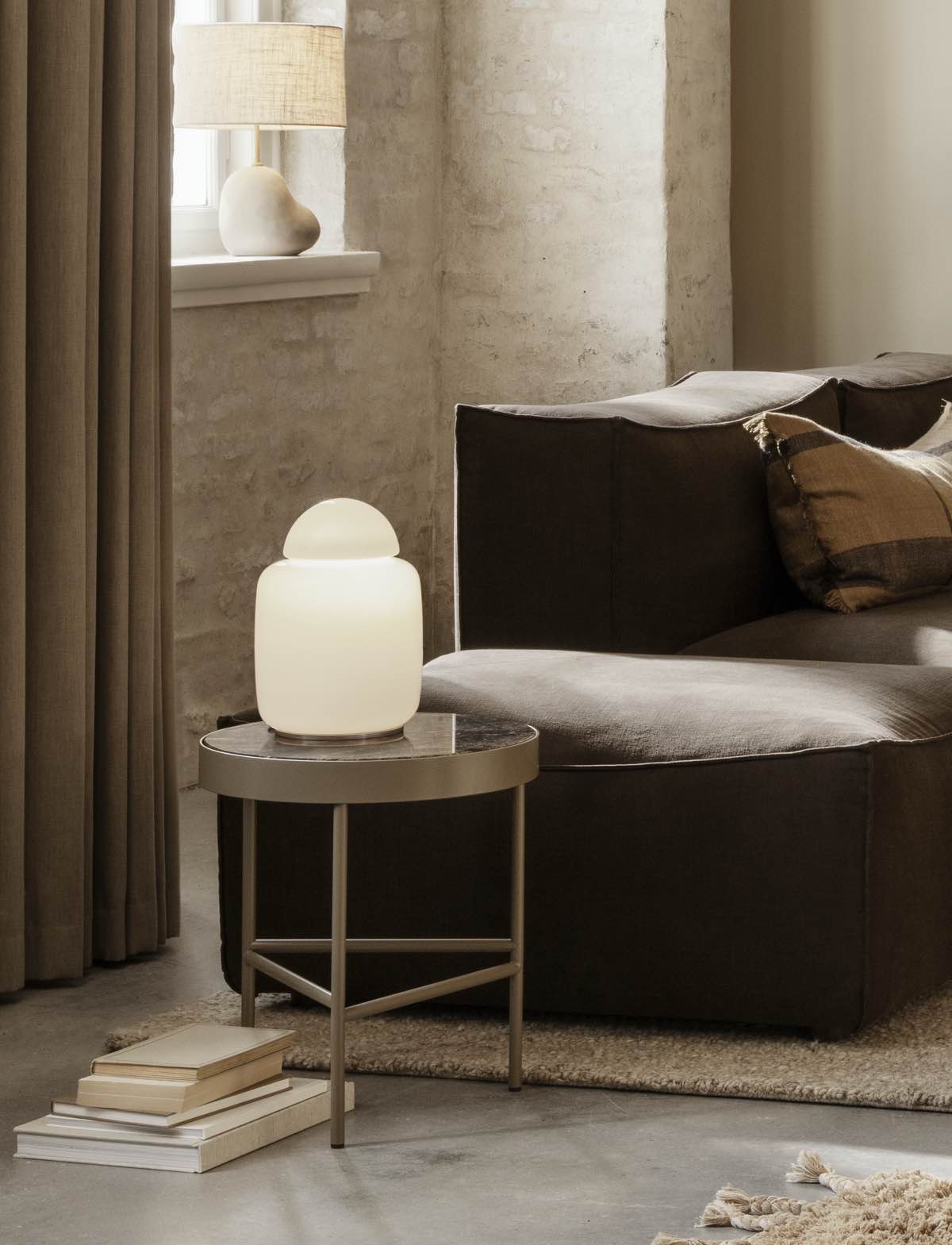 Inspired by vintage glass lamps from the 70’s, the Bell Table Lamp illuminates your home with a soft, diffused light. Made entirely of opal glass with a sleek, glossy finish, the lamp is composed of two simple, geometric shapes balanced on a chrome base. Use it as a decorative lamp in a dark corner or on a shelf to light up your favourite books.