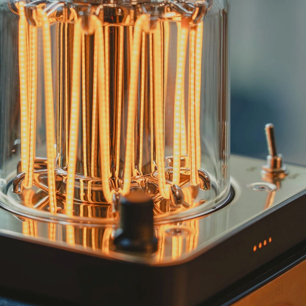 This unique combination blends modern technology with vintage aesthetics, providing a versatile and stylish lighting solution for any environment.