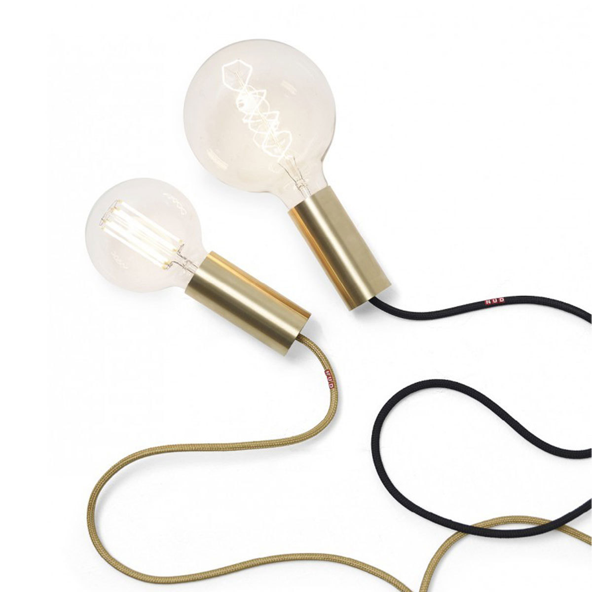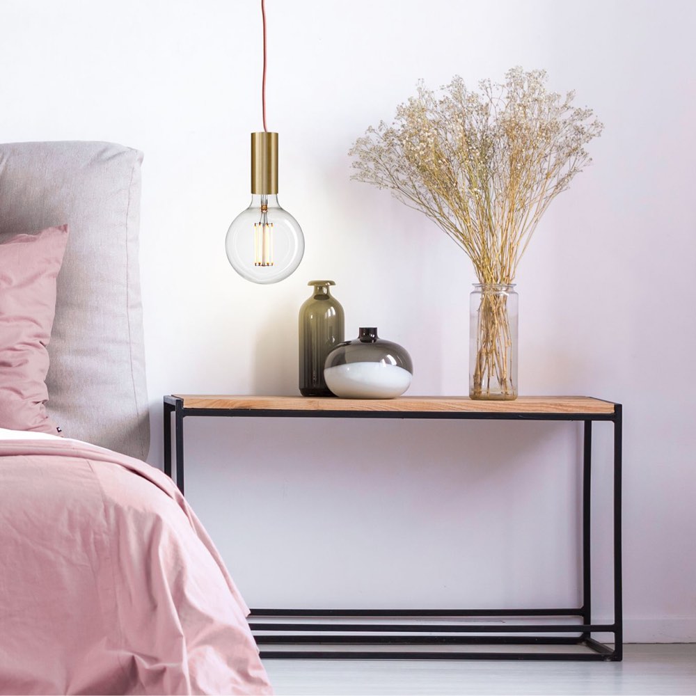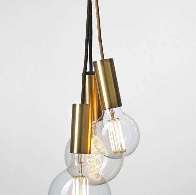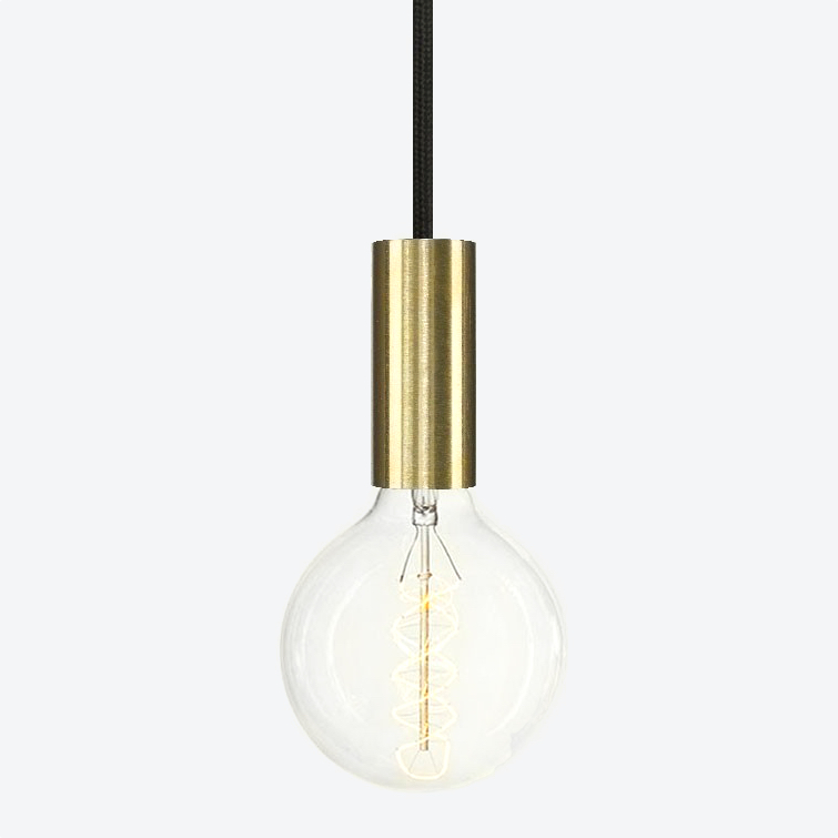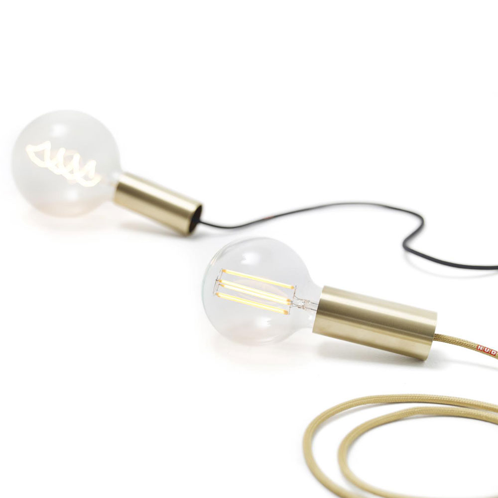 The tube socket made of raw brass makes this light a noble pendant luminaire, which can be individually configured with textile cable in a wide variety of colours.